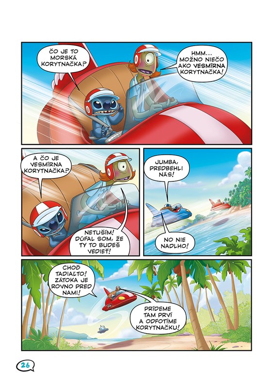 Lilo a Stitch sa chcú trocha zabaviť, a tak vymyslia veľkú hru – Pátracie preteky vo vznášadlách! Spolu s Jumbom a Pleakleym precestujú ostrov krížom-krážom, odfotia si ľudí, miesta aj najrôznejšie veci. Vyhráva tím, ktorý všetko nafotí ako prvý! No keď im skríži cestu nielen Jumbov dávny protivník, ale aj Stitchova láska, celé preteky sú v ohrození. Séria Môj prvý komiks je určená deťom od 6 do 8 rokov, ktoré už dokážu čítať samé. Príbehy sú jednoduché a zrozumiteľné a majú vhodnú dĺžku pre malých čitateľov. S obľúbeným mimozemšťanom pôjde deťom čítanie raz-dva!