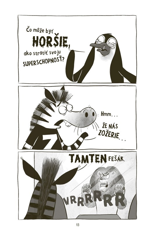 Vo svete, kde každé zviera dostalo svoju superschopnosť, zebra Zeb, tučniačica Margarínka a lemur Barry majú tie najhoršie. Všetko sa ešte zhorší, keď Margi zo dňa na deň príde o superschopnosť pripraviť syrové makaróny z čohokoľvek, a traja kamaráti tak musia čeliť vyhladovanému levovi.