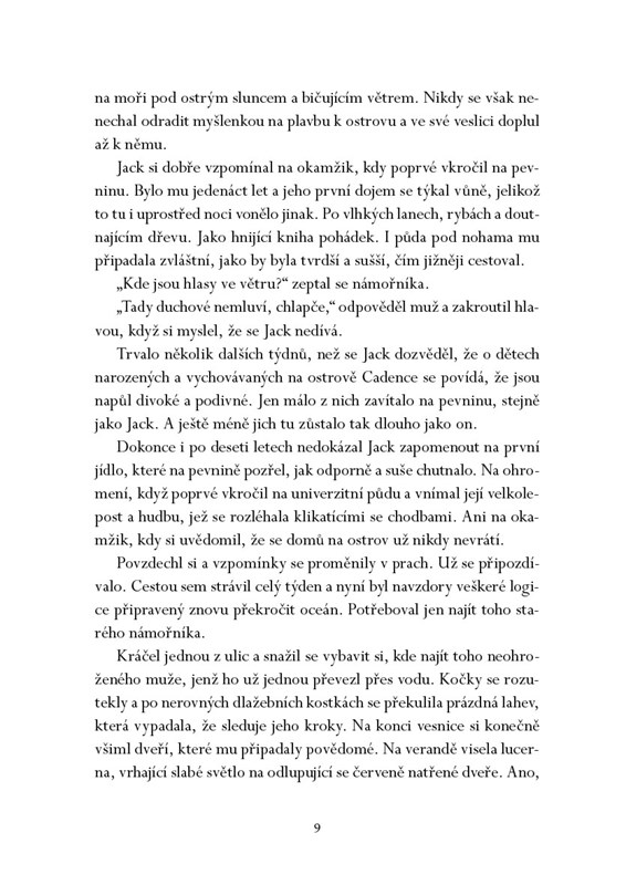 Jack Tamerlain před deseti lety opustil ostrov Cadence, aby se stal bardem na pevninské univerzitě. Když však začnou z ostrova mizet dívky, je povolán zpět domů. Adaira, dědička východní části ostrova a Jackova bývalá rivalka, věří, že jedině bardova hudba dokáže přivolat duchy živlů a záhadu objasnit. Netrvá dlouho a jejich někdejší soupeřivost se mění v křehké spojenectví, ze kterého se zrodí víc než jen hudba. Jenže pod povrchem se skrývají temná tajemství a stačí málo, aby se celý svět ocitl v ohrožení…