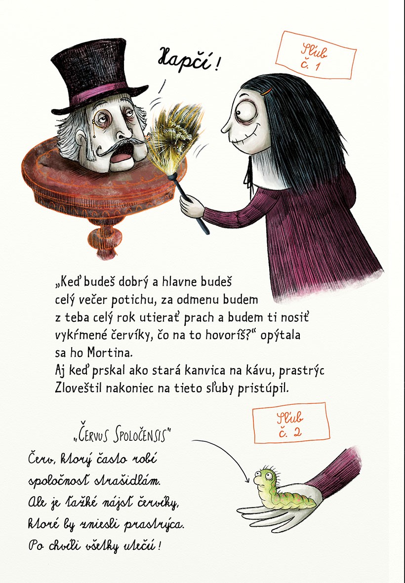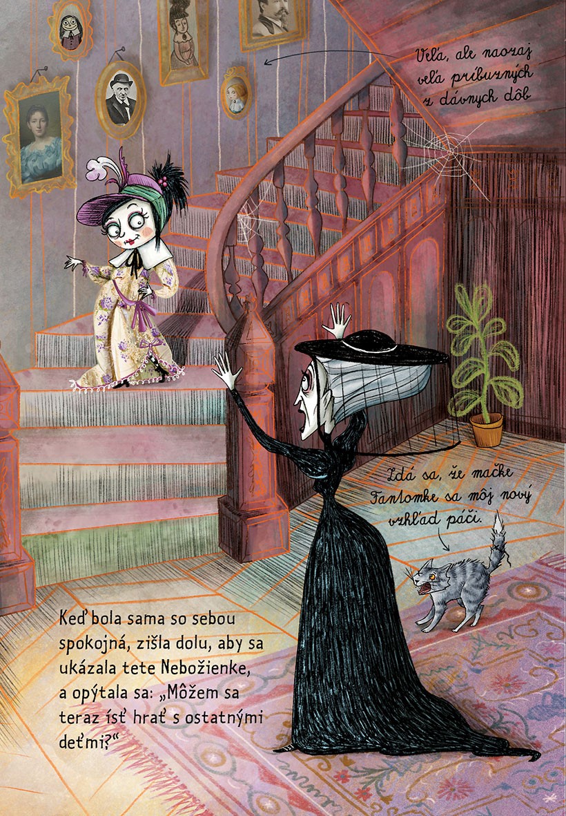 Mortina a jej najlepší kamarát, chrtí albín menom Truchlík, žijú s tetou Nebožienkou vo vile Rozvali...
