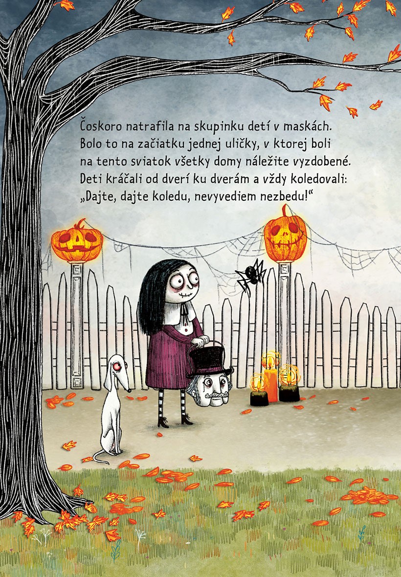 Spolu s tetou Nebožienkou žijú vo vile Rozvalinke a so svojím psím kamarátom, chrtom albínom, ktorý sa volá Truchlík, tvoria nerozlučnú dvojicu. Mortina by chcela mať rovnako starých kamarátov, s ktorými by sa hrala a zabávala, ale má prísny zákaz ukazovať sa ostatným, lebo by sa jej mohli zľaknúť. Jedného dňa nastane tá správna príležitosť: sviatok Halloween. Mortina si nemusí ani vymýšľať kostým…