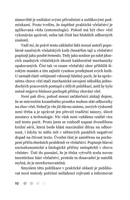 Ačkoli současné včelařství čelí naléhavému problému vymírání včelstev, většina včelařských publikací se zaměřuje pouze na problematiku rad začátečníkům. Tyto knihy v rychlém sledu popíší včelařský rok a nejnutnější úkony včelaře. Včelař tak sice tuší, co musí udělat, ale obvykle neví proč.