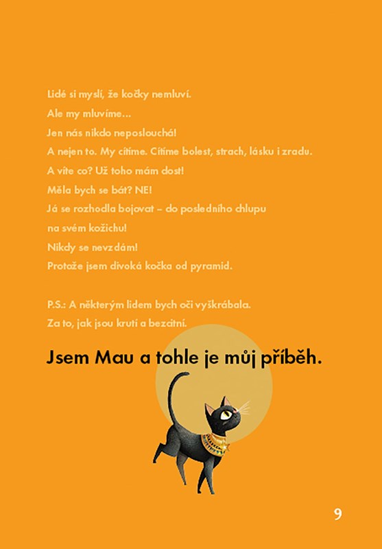 Jsem Mau – divoká kočka, která se narodila mezi pyramidami. Ale osud mě zavál jinam… Toulala jsem se, bojovala, ztrácela i nacházela. A když už jsem si myslela, že patřím jen sama sobě, objevila jsem něco silnějšího – kočičí sirotčinec a v něm domov. Lidi, kteří mě nezlomili, ale přijali. Lásku, která se nebojí drápů. A taky jednoho kocoura, který by si radši ukousl ocas, než aby přiznal, že beze mě nemůže být… Ale já už to vím. A on taky.