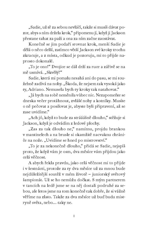 Když rodinu zasáhne další finanční krize, její současný krasobruslařský partner Brayden navrhne, aby nechali svět věřit tomu, co si mnoho lidí už dlouho myslí – že to mezi nimi nejiskří jen na ledě. Fanoušci i sponzoři jim to zbaští, ale udržet tuhle frašku je daleko těžší, než Adriana čekala. A trénování hned vedle Freddieho to jen zhoršuje, obzvlášť když se jí předstírání s Braydenem začíná zdát až příliš skutečné.