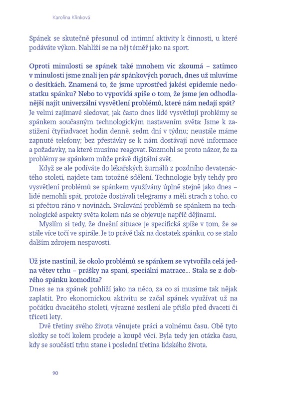Novinářka Karolína Klinková vyzpovídala desítky světově uznávaných odbornic a odborníků ve snaze pochopit, co v současném nejistém světě dělá člověka člověkem. Jak jdou dohromady představy o „šťastném“ a „dobrém“ životě? Jak ve 21. století uvažovat o manželství, přátelství i dalších blízkých vztazích? A jak s tím vším souvisí móda, medicína, feminismus nebo umění? Ve svých odpovědích ukazují v nevšedním světle nás samotné, lidi okolo a také svět, který nás všechny obklopuje.