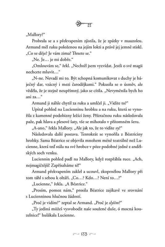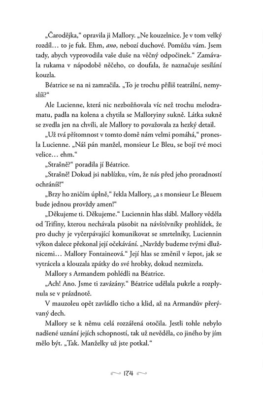Nikdy by však nečekala, že se setká s Bastienovým prapravnukem a dědicem panství Safírů. Armand je pohledný, bohatý a přesvědčený, že sestry Fontaineovy jsou přesně tak talentované, jak tvrdí. Dokonalý cíl. Když Mallory nabídne hromadu peněz, aby zbavila jeho rodové sídlo Le Bleuova ducha, nedokáže odolat.