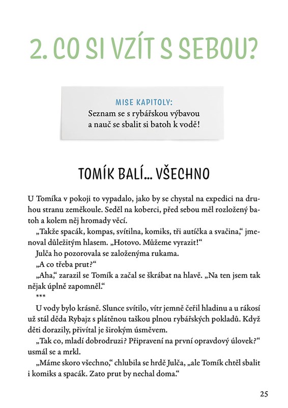 S Julčou, Tomíkem a dědou Rybajzem se vydáš na dobrodružnou cestu k vodě, kde se z obyčejného dne může stát velký rybářský zážitek. Děda Rybajz děti naučí, jak správně držet prut, jak správně nastražit návnadu na háček, poznat různé druhy ryb i jak se chovat k přírodě s respektem. Každá kapitola přináší novou výzvu, hravé úkoly a odznaky, které z malých čtenářů dělají opravdové rybáře a rybářky. Tahle příručka není jen o chytání ryb – je hlavně o trpělivosti, dobrodružství a radosti z času stráveného u vody.