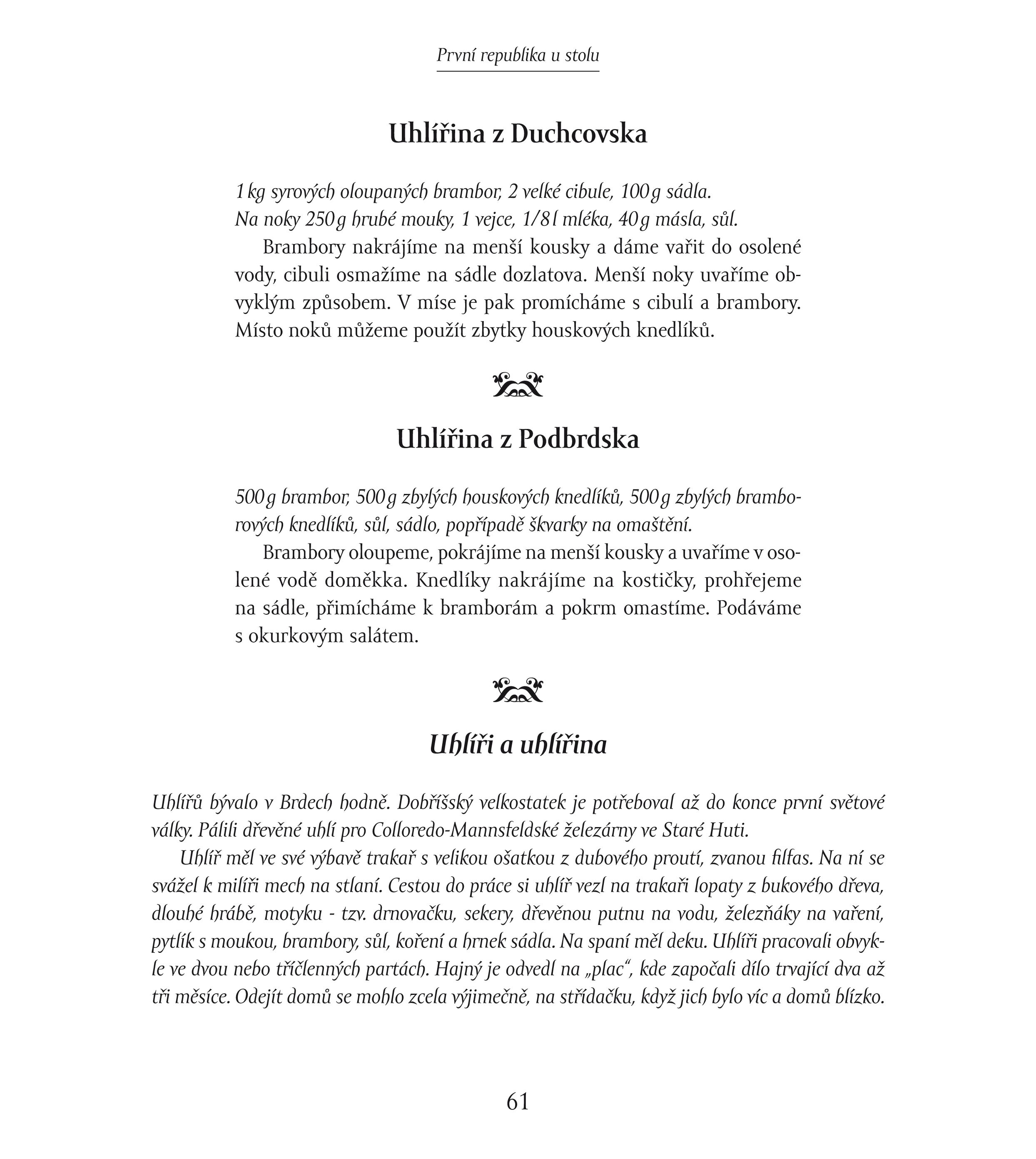 Součástí knihy jsou ovšem i recepty ze stolů obyčejných lidí a kromě toho, že se vám při jejich čtení budou sbíhat sliny na jazyku, určitě si také uvědomíte, jak moc se kuchyně od té doby změnila. Protože kuchyně je jedním z nejpřesnějších zrcadel doby – nikdo tehdy ještě neřešil bio, éčka ani cukr. Banány byly sice jen o Vánocích a jen pro někoho, ale dobré jídlo rozhodně nebylo luxusem.