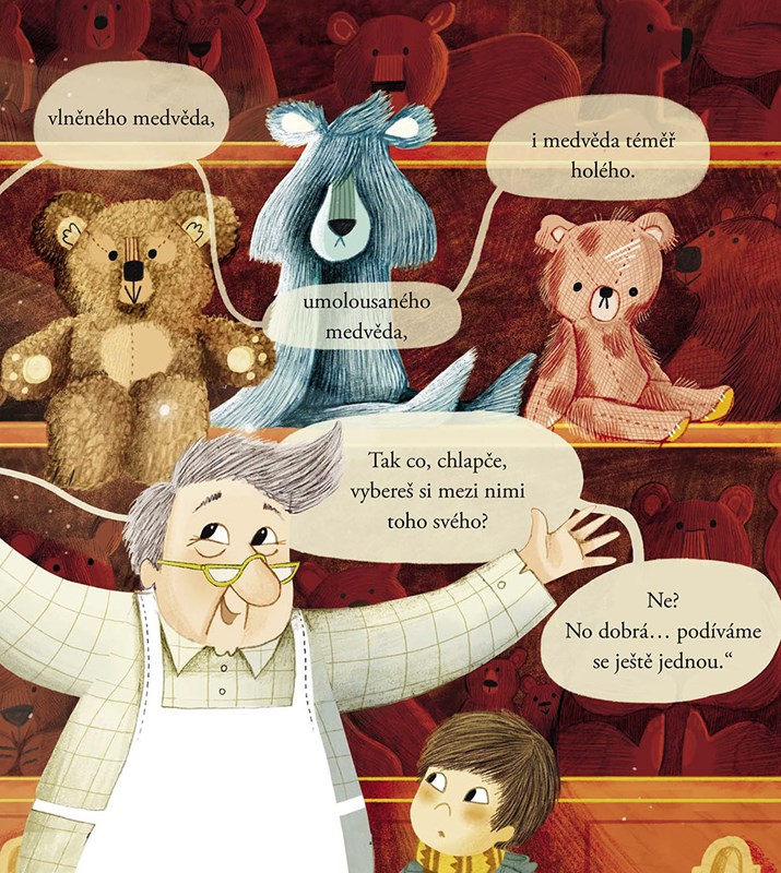 Harry má narozeniny. Kterého nerozlučného kamaráda z plyše si ve vyhlášeném obchodě s medvídky vybere? Toho velkého, puntíkatého, vlněného, toho s pruhovaným zadkem nebo snad toho mluvícího? Zkušený starý pan prodavač si vždy ví rady!