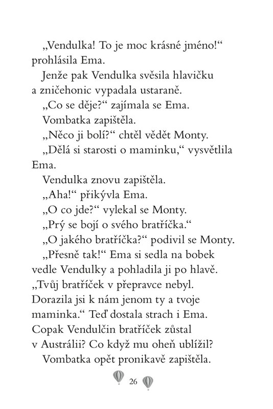 Do zoo strýčka Horáce se přistěhovala rodinka roztomilých vombatů. Malá vombatka Vendulka se těší z čerstvě narozeného brášky, zároveň má ale plnou hlavu starostí, zda pro něj bude jejich výběh bezpečný. Dokáže ji Ema přesvědčit, že se není čeho bát?