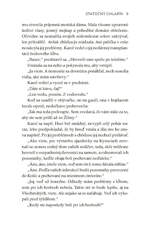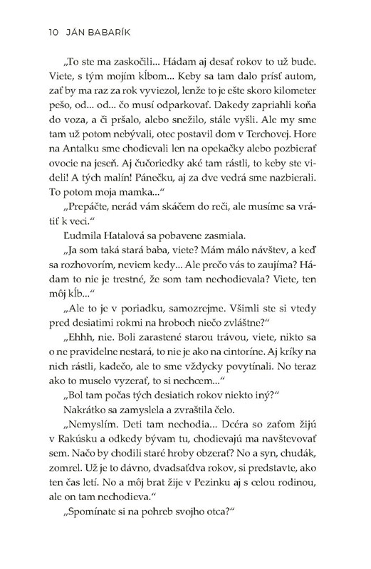 Detektív Bauer stojí pred naozajstnou záhadou. Pátranie ho zavedie najprv do Košíc za Ľudmilou Hatalovou, poslednou majiteľkou pozemkov, kde starý cintorín stál, a potom do Ružomberka za priateľkou muža, ktorý sa v tej oblasti pred sedemnástimi rokmi bez stopy stratil. Jej príbeh popiera zdravý rozum a pragmatický detektív mu odmieta uveriť. Až kým stará pani Hatalová nevytiahne dávne rodinné fotografie.