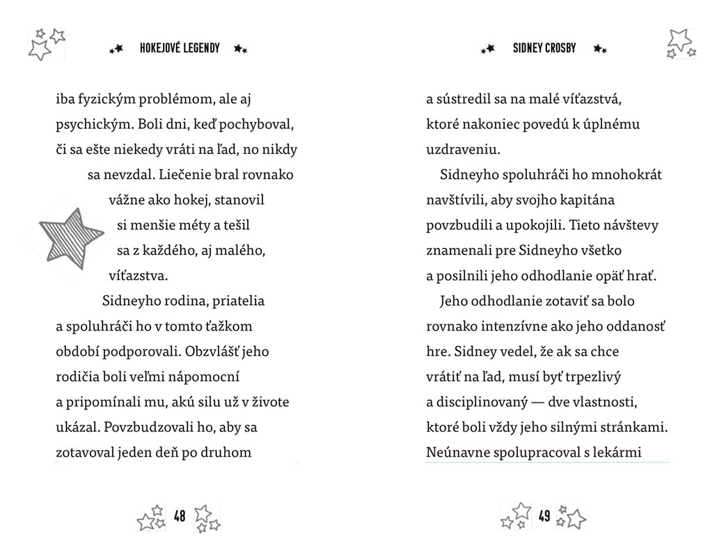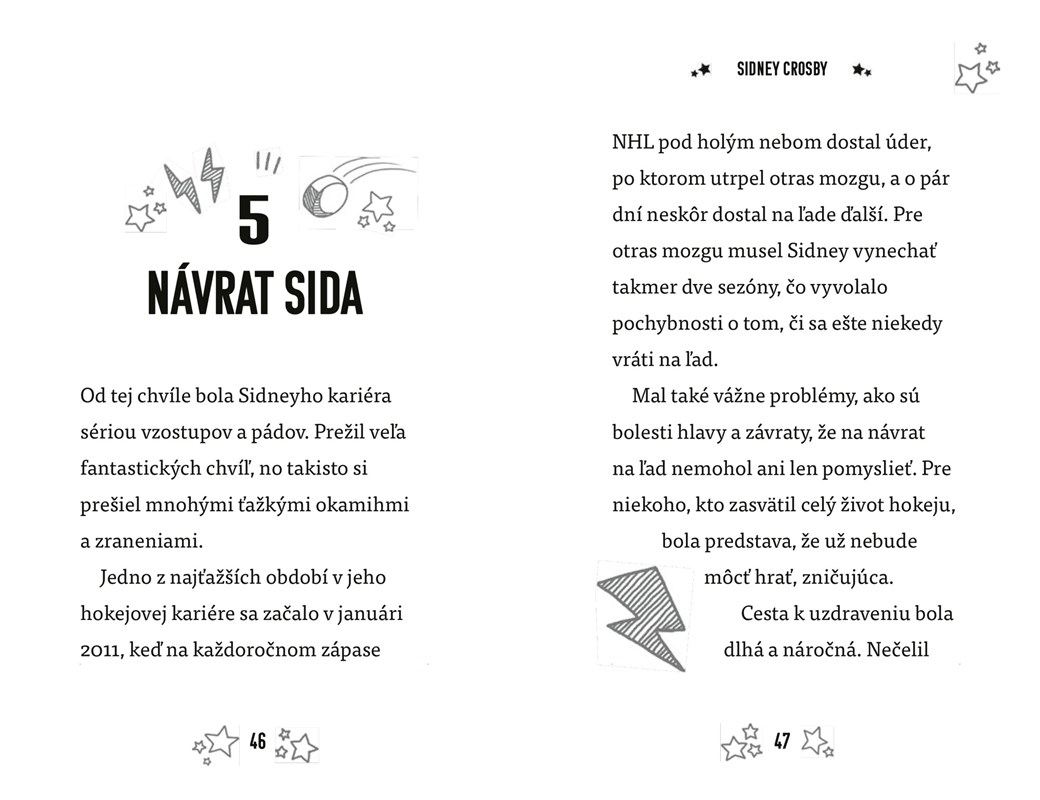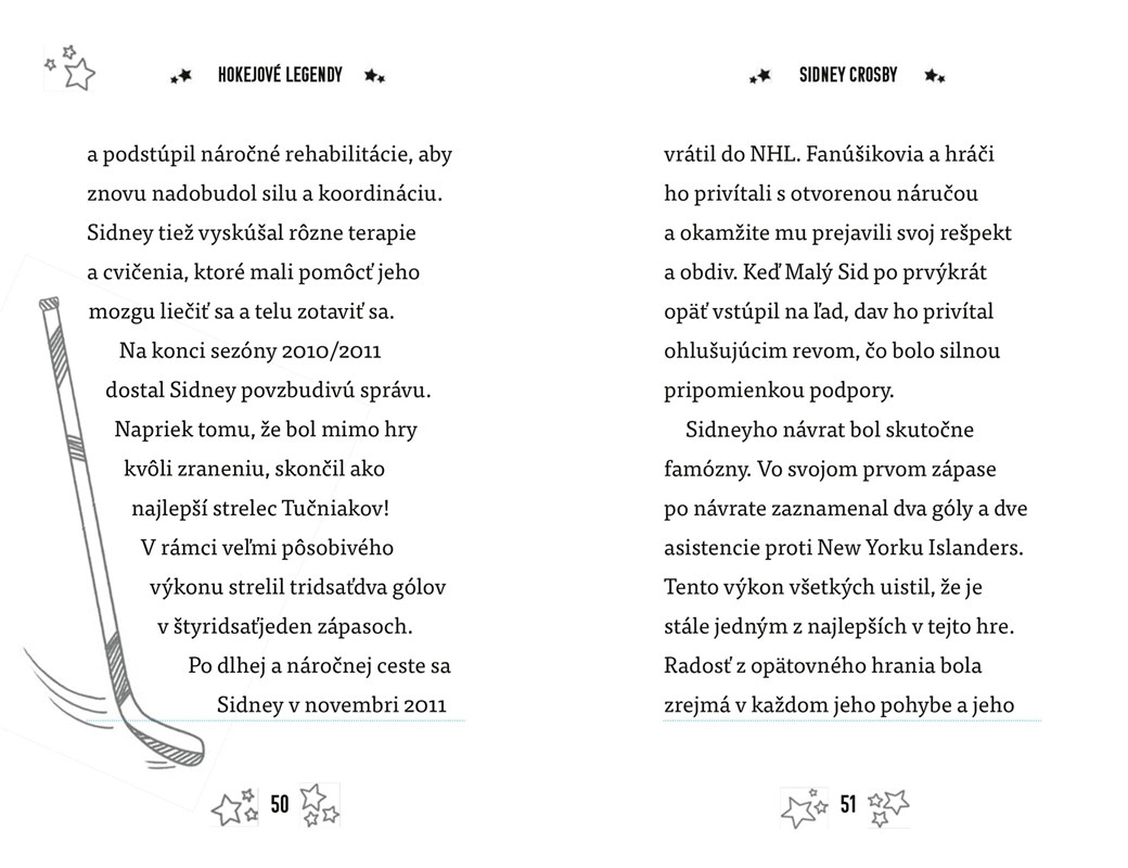 Sidney Crosby patrí v NHL medzi najväčšie hviezdy. V devätnástich rokoch sa stal kapitánom Pittsburghu Penguins, najmladším v dovtedajšej histórii NHL. Svoj tím priviedol k mnohým víťazstvám. Prelomil rekordy, ovplyvnil nastupujúcu generáciu hráčov a navždy zmenil hokejový svet.