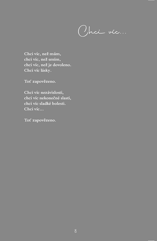 Sbírka poezie, která vás zasáhne. Ponořte se do slov, která vás přimějí cítit, a prociťte radosti, lásku, bolest i trápení.