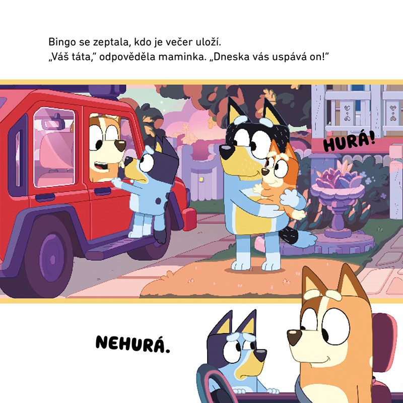 Když maminka vyrazí na návštěvu ke kamarádce na vítání miminka, malou Blue a Bingo musí uložit do postýlky táta. Půjde tátovi uspávání podle plánu? Přečtěte si pohádku na motivy animovaného seriálu o oblíbené rodince pejsků a proměňte usínání v nejkrásnější okamžiky celého dne!