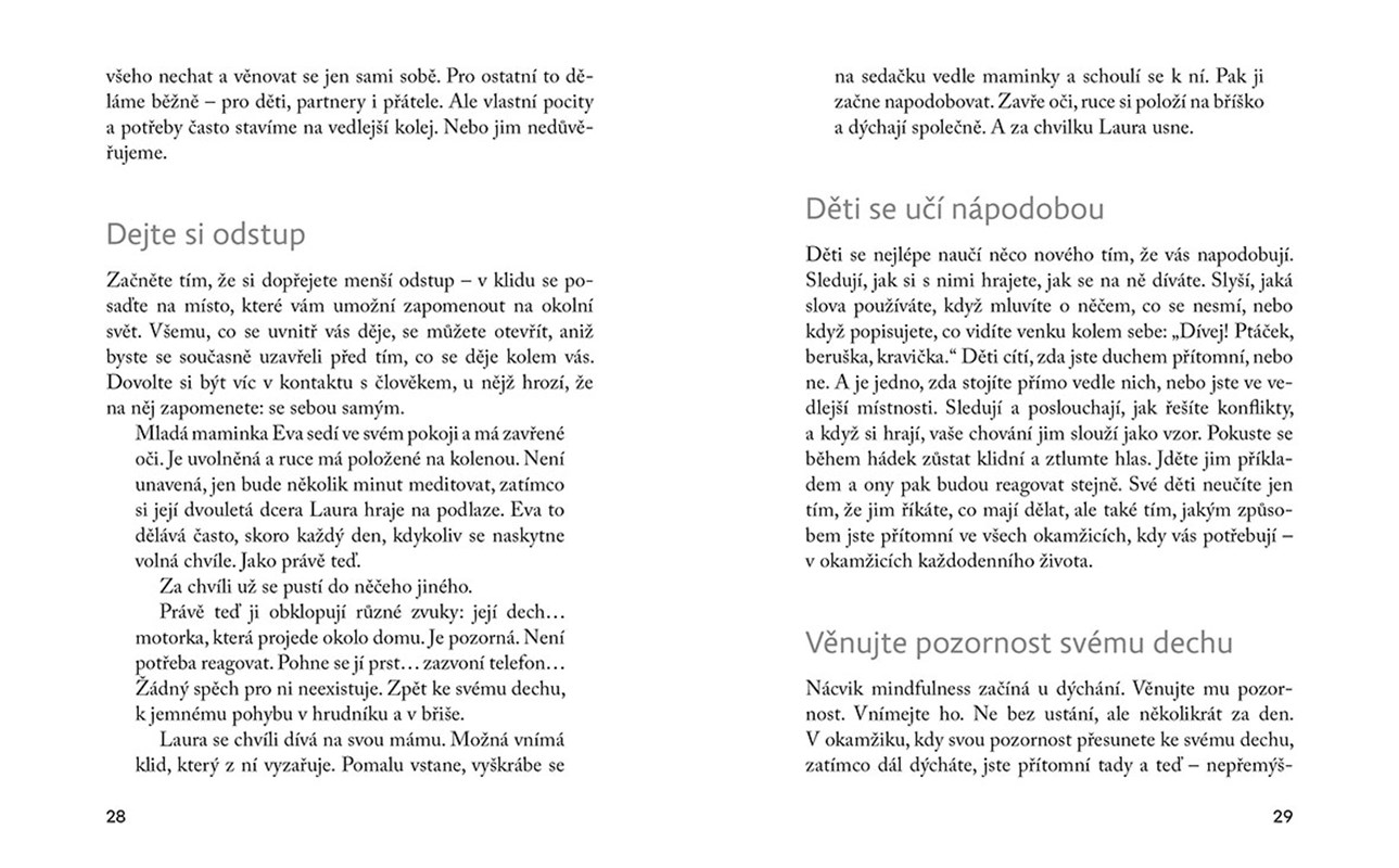 • pěstovat laskavost k sobě jako rodiči či pečovateli díky meditacím a dechovým cvičením.