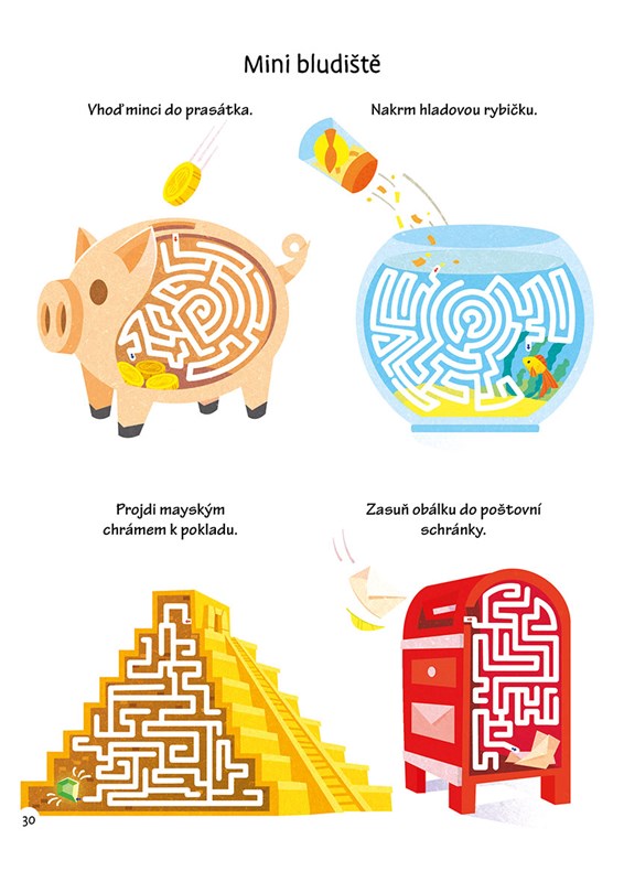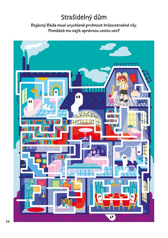 Nejdříve jsou snadné ale později tě můžou pěkně potrápit... Proto si vezmi k řešení na pomoc tužku a kresli přímo na stránky. Pokud se v některém bludišti přece jen ztratíš, nezoufej! Řešení najdeš na konci knihy.