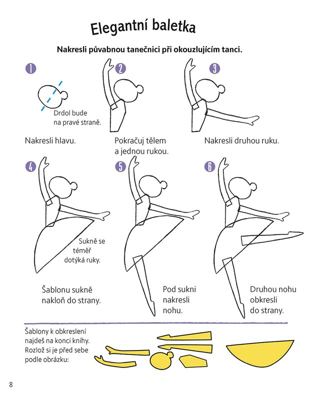 S pomocí šitkovných šablon snadno vytvoříš úžasné ilustrace. Kreslení každého obrázku je uvedeno v několika jednoduchých krocích, které zvládne i začínající kreslíř. Budeš potřebovat už jen papír, pastelky nebo fixy!