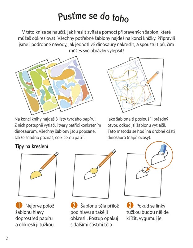 S pomocí šikovných šablon snadno vytvoříš úžasné ilustrace. Kreslení každého obrázku je uvedeno v několika jednoduchých krocích, které zvládne i začínající kreslíř. Budeš potřebovat už jen papír, pastelky nebo fixy!