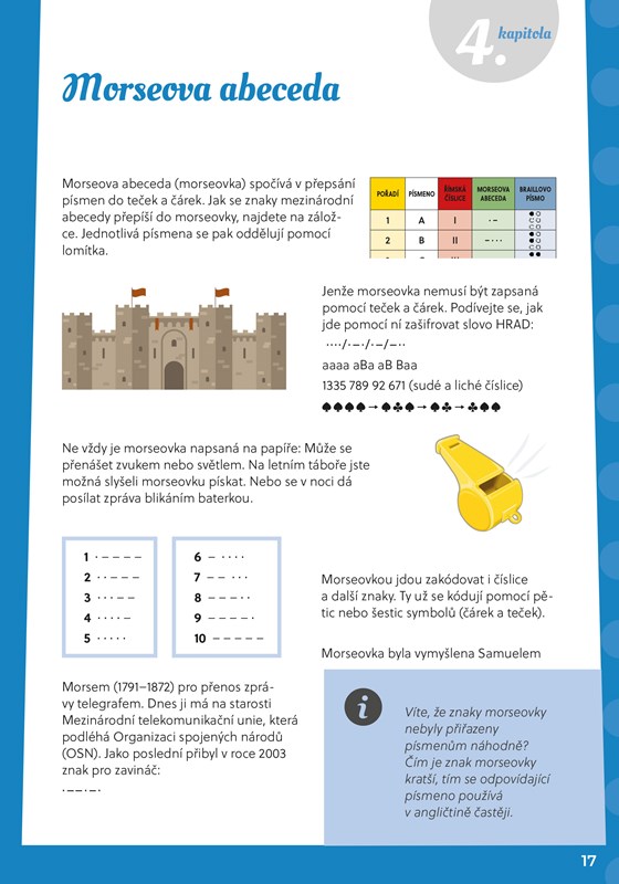 Šifry jsou dnes všude kolem nás. Pomocí šifrování informací komunikují naše počítače doma i mobilní telefony v našich kapsách. Než se však člověk dostane k těmto složitým šifrám, je dobré začít pěkně od začátku. V knížce Šifry pro kluky a holky si řekneme něco o jejich historii, vysvětlíme základní principy, na kterých šifry stojí – ať už jde o ty substituční, transpoziční nebo třeba o Morseovu abecedu. Ve druhé části knihy společně rozluštíme nemalé množství rébusů a šifer různých obtížností. Není třeba se bát, že by některé byly příliš těžké – při nejhorším je tu i nápověda (a pro ověření správnosti i řešení). Celou knihu doprovází spousta zajímavostí z nejrůznějších oblastí. Pojďme si trochu lámat hlavu!