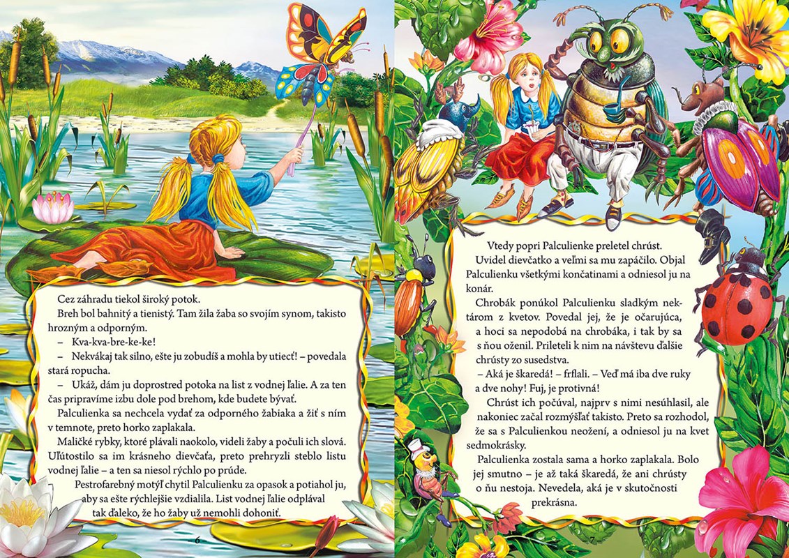 Môžu sa so záujmom začítať do zábavných, napínavých aj poučných príbehov o Palculienke, škaredom káčatku, kocúrovi v čižmách, o vlkovi a siedmich kozliatkach, Alibabovi a štyridsiatich zbojníkoch, Snehulienke a siedmich trpaslíkoch, Červenej čiapočke a o mnohých iných rozprávkových hrdinoch. Čaro týchto príbehov podfarbujú nádherné ilustrácie, ktoré sa deťom určite zapáčia.