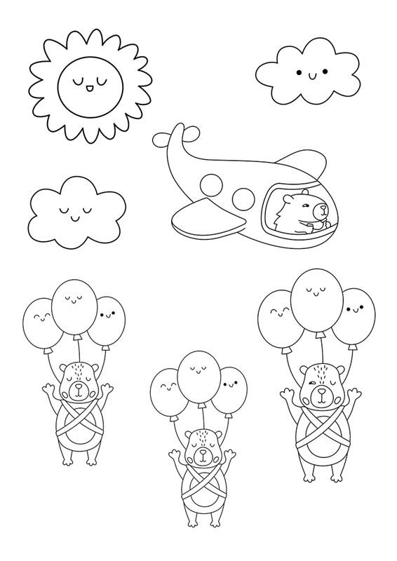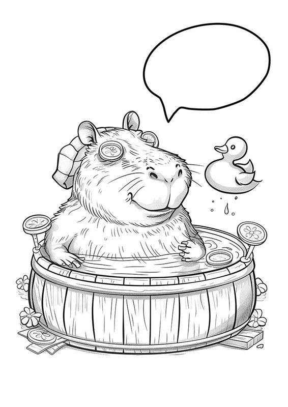 Tahle omalovánková banda čeká jen na tebe a tvoje pastelky, fixy, třpytky nebo třeba barevné nálepky. Najdeš tu kapybary ve vaně, v bazénku, s ananasem na hlavě, ale i kapybary baletky či kuchaře. U některých jsou prázdné komiksové bubliny – napiš tam, co si asi myslí nebo říkají. Čím vtipnější, tím lepší!