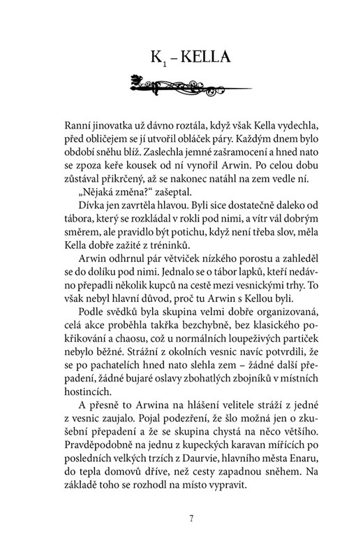 Kella stále pokračuje ve výcviku pod vedením Arwina a společně plní zadané úkoly. Jenže ty začínají získávat na vážnosti… Králi Darenovi hrozí smrtelné nebezpečí a Bellanteriové jsou povoláni do hlavního města. Tam na dívku čeká nová výzva – prostředí plné zdvořilostí, napětí i skrytých hrozeb. Enar se ocitá na pokraji války a cesty Arwina a Kelly se rozdělují. Každý z nich musí blížícímu se nebezpečí čelit sám. Ochrana krále, jejich blízkých i budoucnosti celé země však nepředstavuje poslední zkoušku, která prověří sílu jejich přátelství.