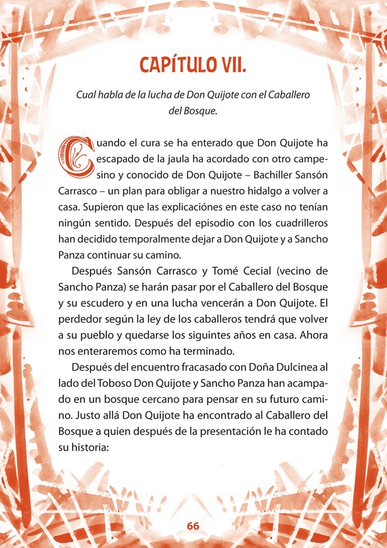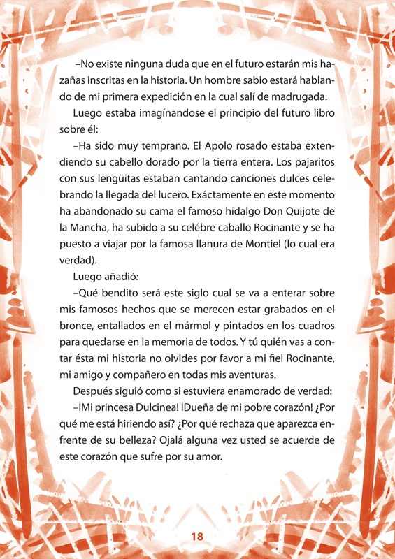 V knize naleznete sedm stěžejních kapitol, vyprávějících o putování známého rytíře. Jsou zpracovány pro začínající čtenáře, kteří si chtějí vyzkoušet, jak si poradí se souvislým textem ve španělštině. Úroveň jazyka v publikaci je vhodná pro začátečníky a mírně pokročilé studenty. Český zrcadlový překlad umožní čtenáři obratem zkontrolovat, zda cizojazyčnému textu správně porozuměl. Cvičení na konci knihy pomohou ověřit získané znalosti.