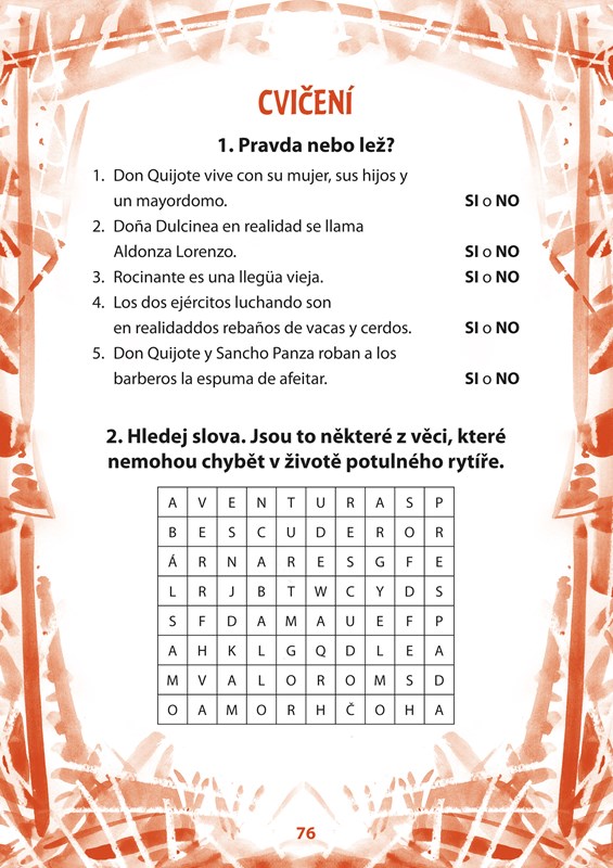 Učte se španělsky s nejslavnějším rytířem všech dob a jeho věrným zbrojnošem! Don Quijote a Sancho Panza vám ukážou všechny krásy, ale také všechna nebezpečí pravé dobrodružné výpravy. Nebudou chybět souboje s bídnými obry (větrnými mlýny), nebezpečnými černokněžníky (mnichy) či pohanskými vojsky (se stády ovcí a skopců).