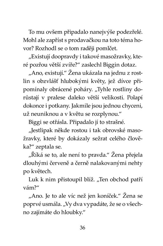 V zapadlé městské uličce je schovaný záhadný obchod, o kterém Klub Tygrů dosud nikdy neslyšel. Vypadá hrůzostrašně zvenku a i zevnitř. Prodávají tam neuvěřitelné věci: démonické masky, odporné amulety i obří masožravé rostliny. O majitelce obchodu navíc kolují podivné zvěsti.