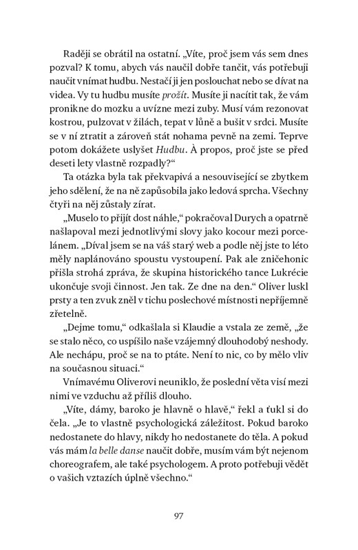 Klaudie bojuje. Táňa se hněvá. Laura sní. Vendy uniká. Každá má svůj hřích, svůj bolestný tón. Před deseti lety je rozdělilo traumatické tajemství. Když se rozhodnou obnovit slávu své taneční skupiny, vyberou si velkolepou barokní choreografii. Zjišťují ale, že comeback nebude snadný. Až Oliver, excentrický taneční mistr, se pokusí najít společnou melodii pro čtyři rozladěné tanečnice.