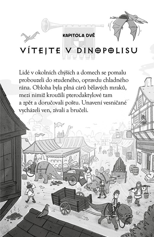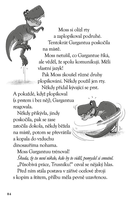 V království Primordia nejezdí rytíři na koních – bojují na dinosaurech! Ale ne každý si tam žije na vysoké noze... Seznamte se s Mossem – prostým kydačem dino hnoje v královských stájích. Ten nebohý chlapec se určitě nikdy nestane rytířem! Anebo že by přece…? Když král odjede na válečnou výpravu, banda zrádných rytířů ovládne královský palác. Dokážou statečný Moss, rebelantská princezna Opál a obrovský Trex zachránit království, co myslíte? Tak se honem pusťte do čtení…