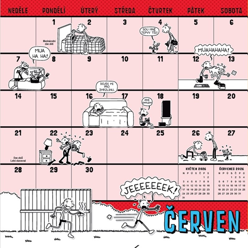 V jedinečném nástěnném kalendáři s klasickými kresbami Jeffa Kinneyho a barevnými citáty najdete všechny své oblíbené postavy. Jako bonus obsahuje padesát poseroutkovských samolepek, kterými si snadno připomenete narozeniny, návštěvy u lékaře i mimoškolní činnosti.