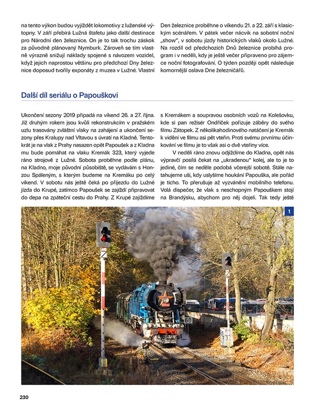 Železniční muzeum v Lužné u Rakovníka je skutečným unikátem a lákadlem pro fanoušky kolejové dopravy. Největší železniční muzeum v České republice, které se pyšní sbírkou parních lokomotiv, historických motoráčků, dieselových i elektrických lokomotiv a nákladních a speciálních vozů, je nejen místem pro milovníky techniky. Je také svědectvím o obětavosti a vášni lidí, kteří se rozhodli zachovat pro budoucí generace to, co by jinak mohlo zapadnout v zapomnění. Vznik muzea, příběhy vystavených strojů i svou životní pouť spojenou s vlaky vám v této jedinečné knize přiblíží Michal Šorel, jedna z klíčových postav muzea. Autor poutavě líčí cestu od dětského okouzlení lokomotivami až k budování jedinečné sbírky vozů kolejové dopravy. Poutavé vyprávění je doplněno stovkami jedinečných fotografií.