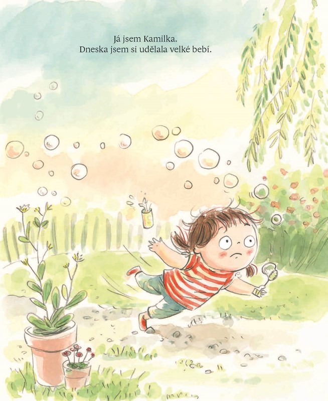 Kamilce se stala nejhorší věc na světě – má bebíčko! Ještě štěstí, že jsou tady maminka, tatínek a věrní kamarádi. Krásná obrázková knížka o tom, že žádná bolest netrvá věčně a že láska, smích a pohlazení dělají zázraky.