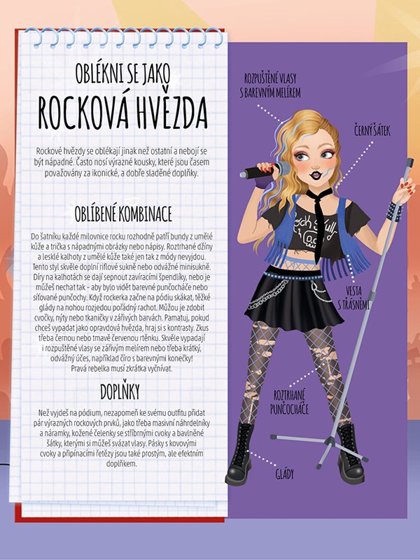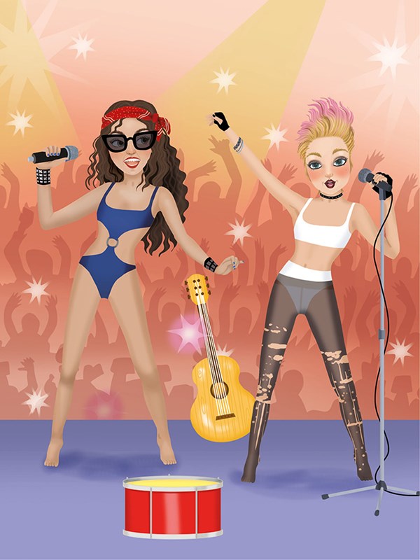 Ukaž, co je v tobě, a předveď se jako šikovná módní návrhářka. Použij super stylové samolepky a vytvoř hvězdám originální oblečky na rockový, popový, swingový i K-popový koncert. Navrhni odvážné outfity se síťovanými punčochami, třpytivými doplňky nebo oblečením ve vintage stylu!