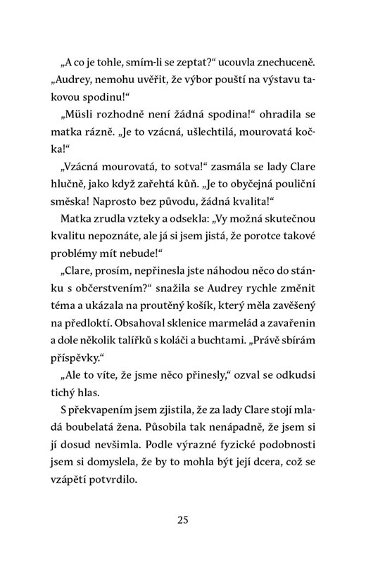 Gemma snila o romantickém víkendu se svým novým přítelem, ale místo toho ji čeká vesnická slavnost s její energickou matkou a nezbednou kočkou Müsli. Jenže na výstavě koček dojde k záhadnému úmrtí a zvědavé postarší dámy mají jasno: je to vražda! Inspektor Devlin O´Connor jim nevěří, a tak Gemma nemá na výběr a pouští se do pátrání. Ale vražda není to jediné, co ji trápí. Zoufale hledá vlastní bydlení a odolává matce, která jejímu vztahu nepřeje. Odhalí pravdu skrytou v piškotovém dortu dřív, než vrah udeří znovu?