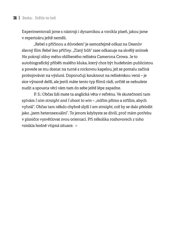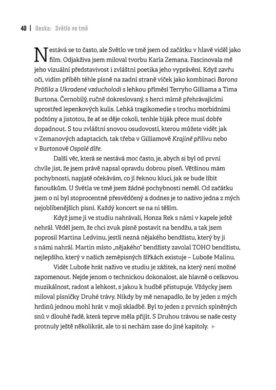 Skupina Jelen během třinácti let existence projela mnohokrát celou republiku tam a zpátky, odehrála nespočet koncertů a oslovila tisíce fanoušků. V této knize se s vámi zpěvák, kytarista, frontman a textař Jindra Polák podělí o příběhy, které stály u vzniku písní. Ať už vás vezme na výlet do studia, kapelní šatny, do svého dětství, k prvním láskám nebo třeba na procházku mezi náhrobními kameny, všude vás nechá nahlédnout pod pokličku tvůrčího procesu.