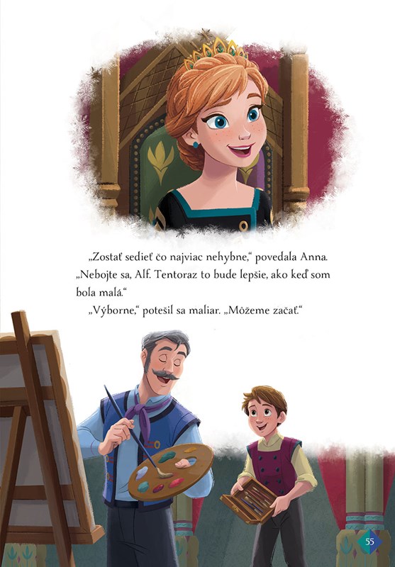 V prvých dvoch príbehoch si prečítate o tom, ako Anna s Elsou spolu s celým kráľovstvom slávili významný deň – výročie, kedy sa znova otvorili brány arendellského zámku. V ďalšom príbehu bude Anna pózovať dvornému maliarovi. Ale iste tušíte, že to nebude úplne ľahké. A napokon budete držať palce Kristoffovi, ktorý zbiera odvahu, aby požiadal Annu o ruku. Ale ako to dopadne?