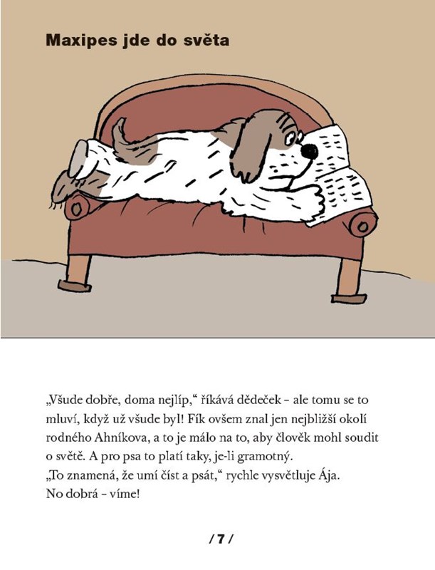 Napínavá dobrodružství oblíbeného večerníčkového hrdiny maxipsa Fíka v knižní podobě. Děti se s Fíkem vydají na cesty – Fík totiž vyrazí na zkušenou do světa. Postupně se stane námořním kapitánem, africkým náčelníkem, psem záchranářem, objevitelem a pilotem, ale nakonec se přece jen rád vrátí zpátky ke svojí kamarádce Áje. Veselými ilustracemi doprovodil Jiří Šalamoun.