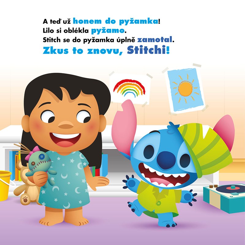 Stitch se chystá do postýlky, ale vypadá to, že nezamhouří oči, dokud nevyvede nějakou rošťárnu. Co malý mimozemšťánek zažije, než se konečně zachumlá do pelíšku? Ukliďte si se Stitchem hračky, vyčistěte zoubky, oblékněte pyžamko a šup do postýlky s pohádkou!