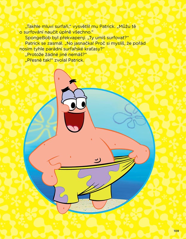 U všech makrel! Super vtipné příběhy o SpongeBobovi v kalhotách a jeho potrhlých podmořských dobrodružstvích jsou tu! Přidejte se ke SpongeBobovi, Patrikovi, Sandy a jejich kamarádům ze Zátiší bikin na jízdě plné zábavy, napětí a legračních dobrodružství! Čeká vás devět parádních podmořských příběhů na motivy oblíbeného seriálu o surfování, strašidelném korábu, senzačním výletě nebo automobilových závodech, a to není zdaleka vše! Každou pohádku přečtete za 5 minut, takže se knížka skvěle hodí k předčítání před spaním.