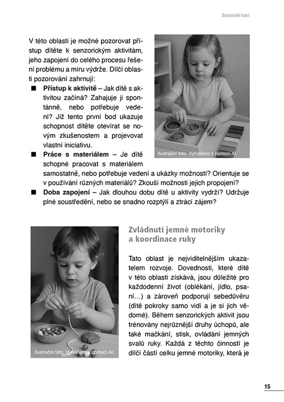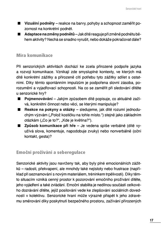 Publikace je praktickým průvodcem pro lektory, pedagogy a rodiče, kteří chtějí využívat senzorické hraní jako nástroj pro pozorování a podporu vývoje dítěte ve věku od 18 měsíců do 6 let.