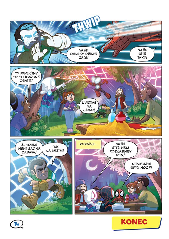 Oblíbení pavoučí hrdinové Spidey, Ghost-Spider a Spin už sviští do akce v komiksové knížce plné úžas...