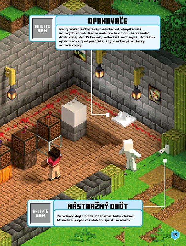 Vytvorte úžasné redstonové stavby s použitím viac ako 300 samolepiek. Postavte automatizovanú železničnú trať v hlbokom podzemí, vytvorte tajné pasce na oklamanie zlých mobov a nakoniec oslávte svoje majstrovské diela špeciálnou ohňostrojovou šou!