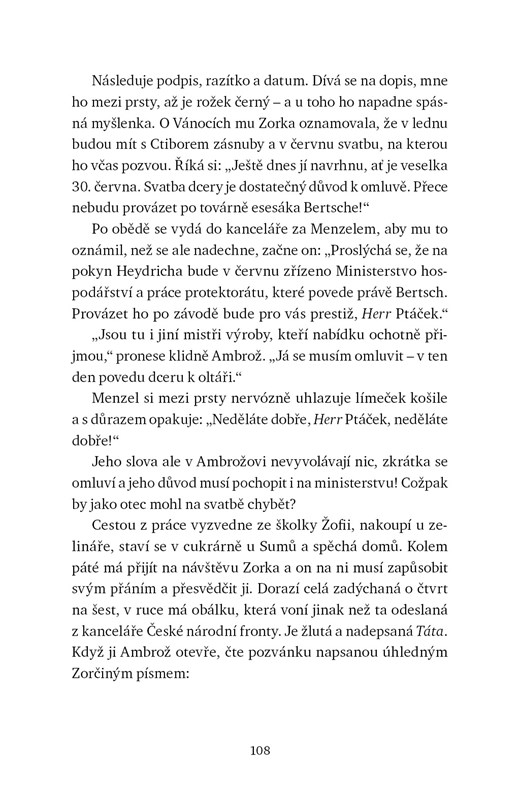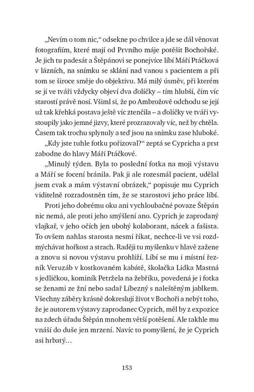 Ne každý hřbet je pokřivený od bolesti. Některé se kroutí pod tíhou viny. Bochoř u Přerova, léta 1941 a 1942. V lázeňské vesnici, kde se mísí vůně sirnato-železité vody s tíhou válečné doby, se proplétají osudy dvou mužů. Ambrož Ptáček, mistr přerovské továrny na výrobu kufrů, pro vrtkavou lásku opouští svou rodinu. Dezider Horvát, patriarcha cikánské rodiny, hledá v době nacistické okupace bezpečí pro své blízké. S nástupem Heydricha se v protektorátu objevují udavači, jejichž závist a pomstychtivost uvrhají celé rodiny do neštěstí. Zatímco starosta Lanč se snaží chránit vesnici před nacistickými nařízeními, někdo s potěšením píše udání na gestapo a přilévá olej do ohně nedůvěry. V těžkých časech za rodinu bojuje i Ambrožova žena Máří, která navzdory rozkladu manželství a nejistotě doby hledá sílu zachovat svým dětem domov.
