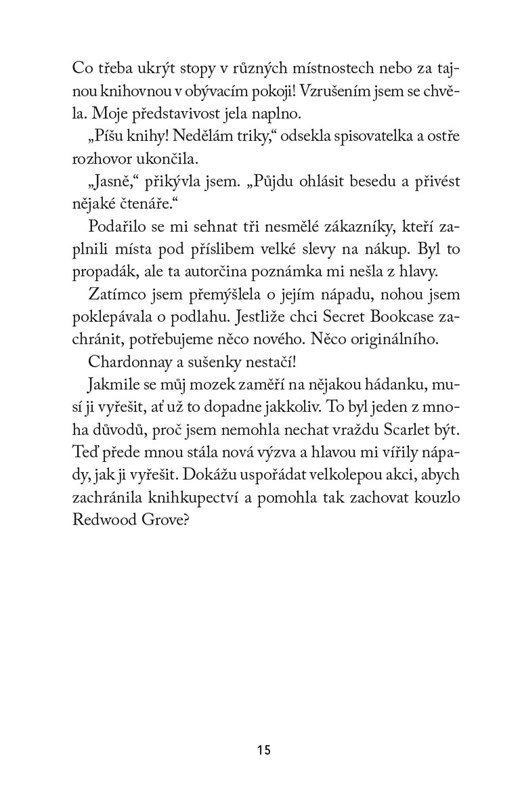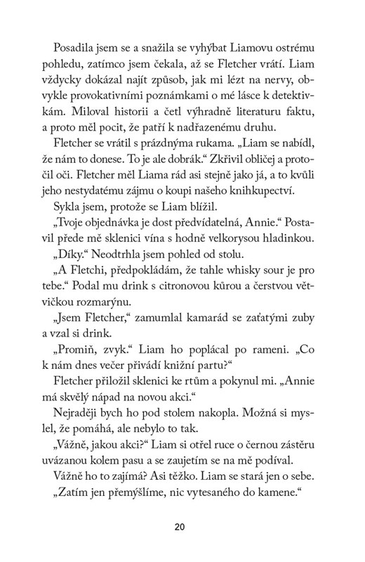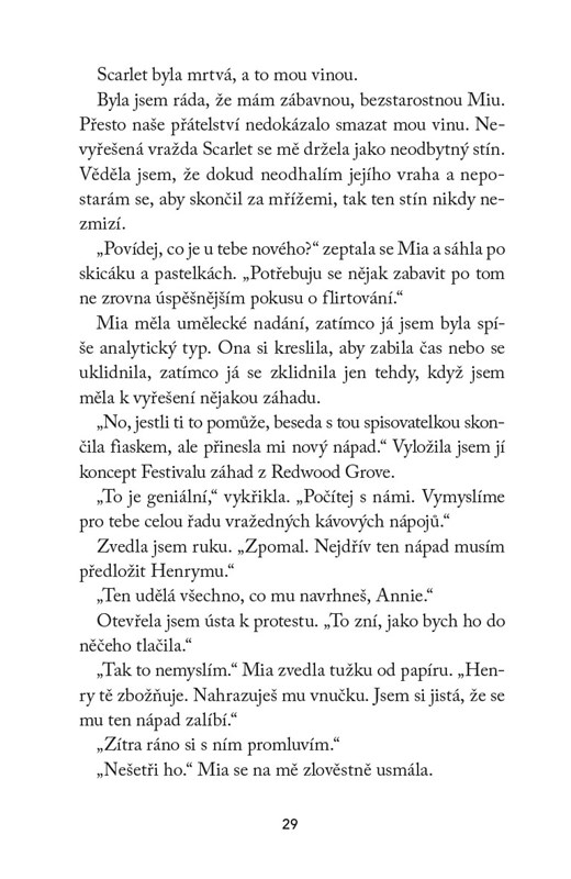Annie miluje detektivky a práce v knihkupectví je pro ni splněným snem. Jenže prodeje klesají, a tak uspořádá Detektivní festival, který zachrání i další podniky v ospalém městečku Redwood Grove – včetně hospody, jejíž majitel Liam akci moc nefandí. Ale pak je mezi regály s knihami objevena zavražděná žena a Annie má možnost využít své znalosti ze studia kriminalistiky. Podezřelí přibývají a Liam se nečekaně stává jejím spojencem. Dokáže Annie odhalit vraha dřív, než se festival promění v ještě větší drama?