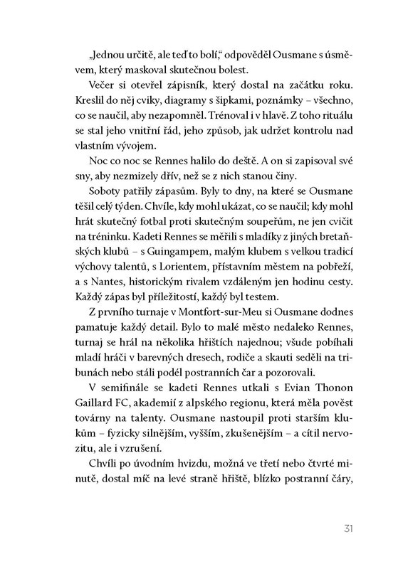 Kniha čtenáře zavede do uliček Vernonu a Évreux, na hřiště v Rennes, kde se rodila jeho rychlost i osobnost, do Dortmundu, kde explodoval jeho talent, i do Barcelony, kde zápasil s vlastním tělem a tlakem očekávání. Nakonec se vrátil domů do Paříže, kde se z „křehkého génia“ stal symbolem síly, pokory a víry.
