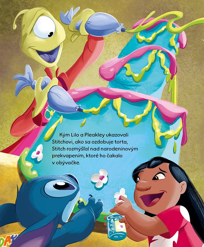 Všetko najlepšie, Stitch! Stitcha čaká prvá narodeninová oslava! Zvedavý mimozemšťan má veľmi rád darčeky a prekvapenia, a preto mu nikdy nič neunikne. Lilo bude mať čo robiť, aby ho zabavila, kým kamaráti preňho pripravia tajnú oslavu. Prečítajte si rozprávku o narodeninovom prekvapení a zabavte sa s týmto modrým nezbedníkom!