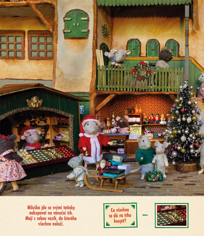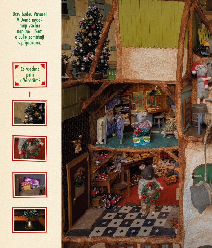 Pokračování velice populární knihy Hledej a najdi je ve znamení Vánoc. Spolu se Samem a Julií budete hledat ty nejmenší detaily v Domě myšek. V obchodech, dílnách, pokojích, kuchyních i venkovních prostorách se toho totiž dá hodně objevit. Stačí se jen dobře dívat! Najdete vánoční ozdoby, stromečky, čepice a ponožky?