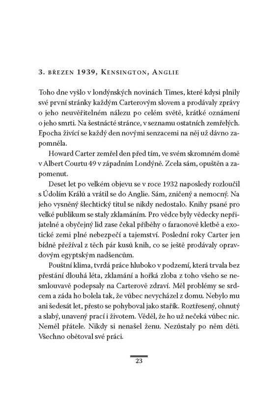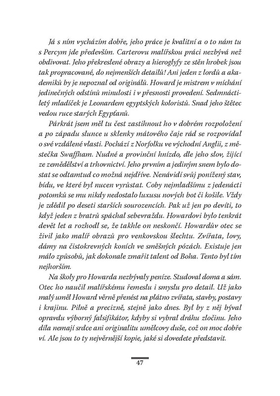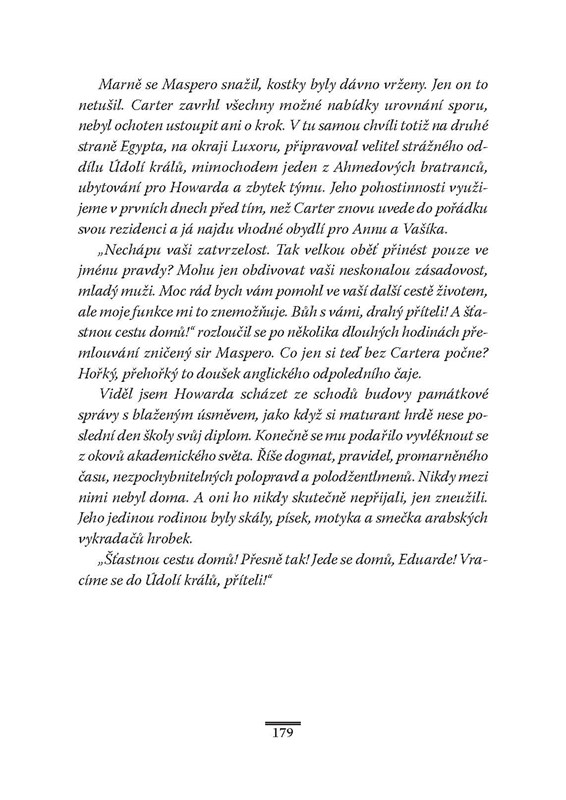 Na staré půdě bývají k nalezení různé poklady. Když však řemeslníci objeví starý deník v domě mladé Egypťanky s českými kořeny, spustí se v Káhiře nebývalý povyk. Lidé se ztrácejí za zvláštních okolností a někdo má enormní zájem na tom, aby si mladá žena deník svého pradědečka – českého milovníka archeologie Eduarda – nikdy nepřečetla. Jaké je tajemství Eduardova přátelství se slavným Howardem Carterem? Je objev Tutanchamonovy hrobky skutečně největším objevem století? A nestal se čirou náhodou zlatý faraon pouhým předmětem jednoho z největších podvodů v historii?
